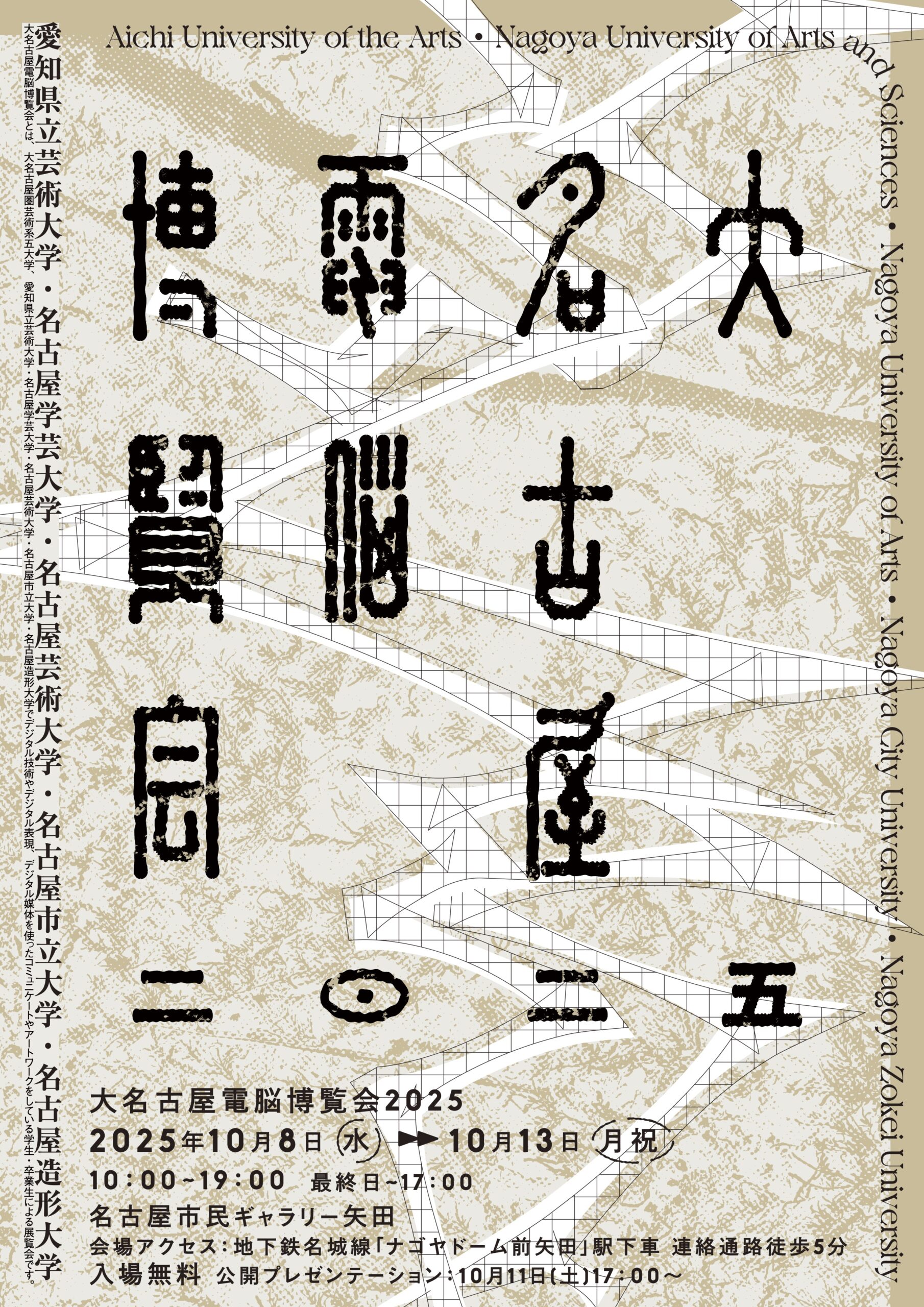 10月8日(水)~10月13日(月祝)、市民ギャラリー矢田にて開催の「大名古屋電脳博覧会2025」に、本学卒業生、映像メディア学科助手と、大学院生が出品いたします。