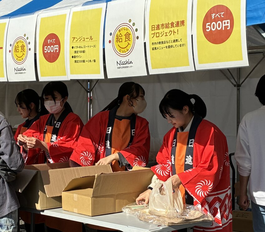 「にっしん市民まつり」の「にっしん給食横丁」で栄養教諭教職課程学生がお手伝いをしました